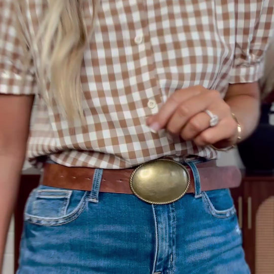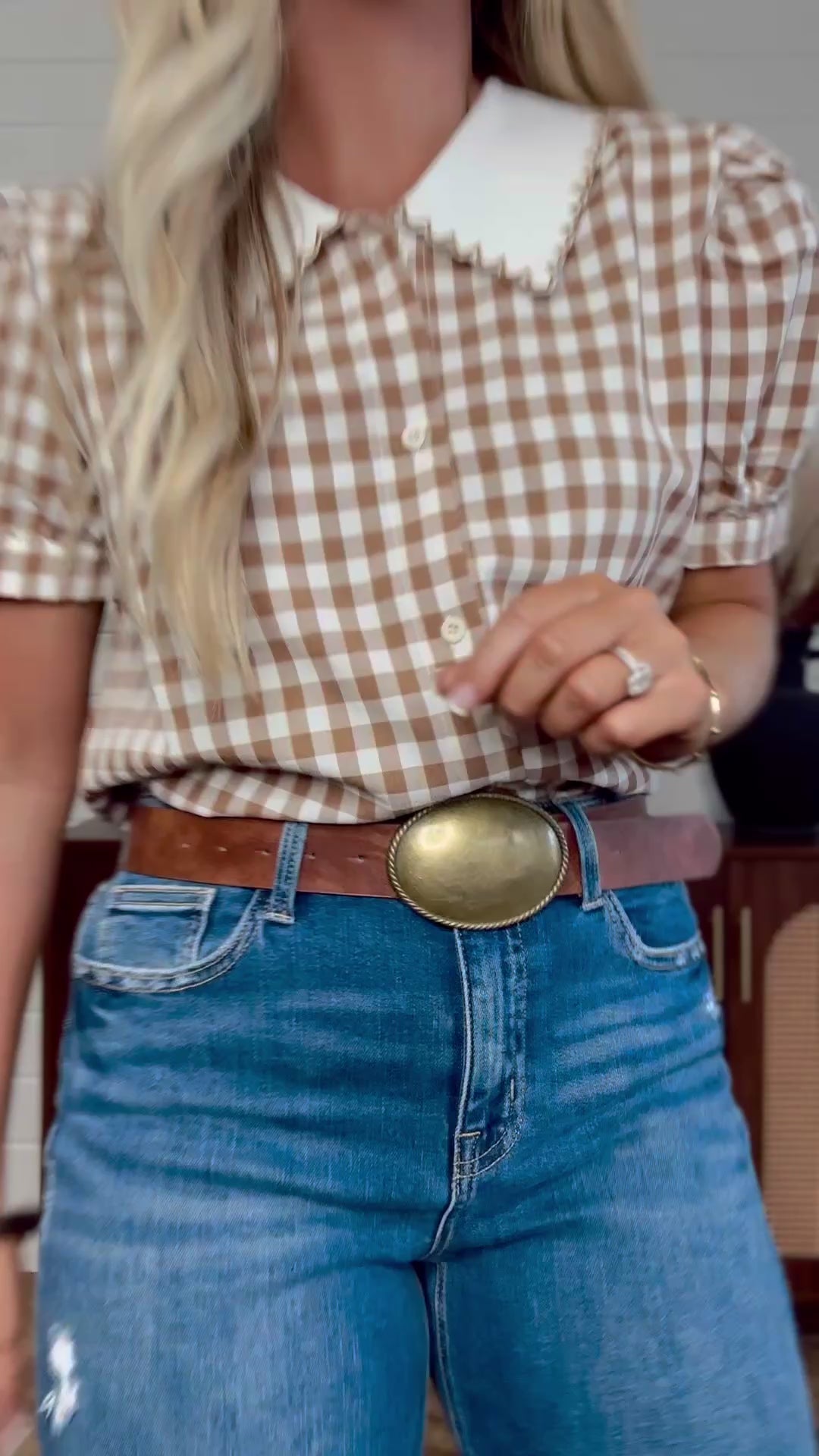 Sweet meets southern charm in the Bisbee Blouse. With a soft cream and tan gingham print, puffed short sleeves, and a darling Peter Pan collar, this one brings all the vintage-inspired vibes.